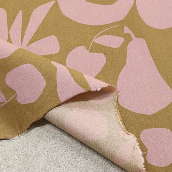 MEB-50CUT-C2 生地 MAISON bornne BENEBENE ベネベネ 韓国生地 ナチュラル 布 ローン生地 北欧モダン フルーツ柄 りんご さくらんぼ 大柄プリント ナチュラル コットン 布 巾広 巾約138cm 最低単位50cm~10cm単位の切売