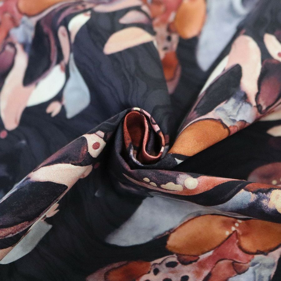 他の画像を見る FSP-901 輸入生地 生地 ネイビー地 水彩 オレンジ抽象花柄 FreeSpirit フリースピリット USAプリント 巾約110cm最低単位50cm~10cm単位の切売 ¥ 238 税込 お気に入りに登録する