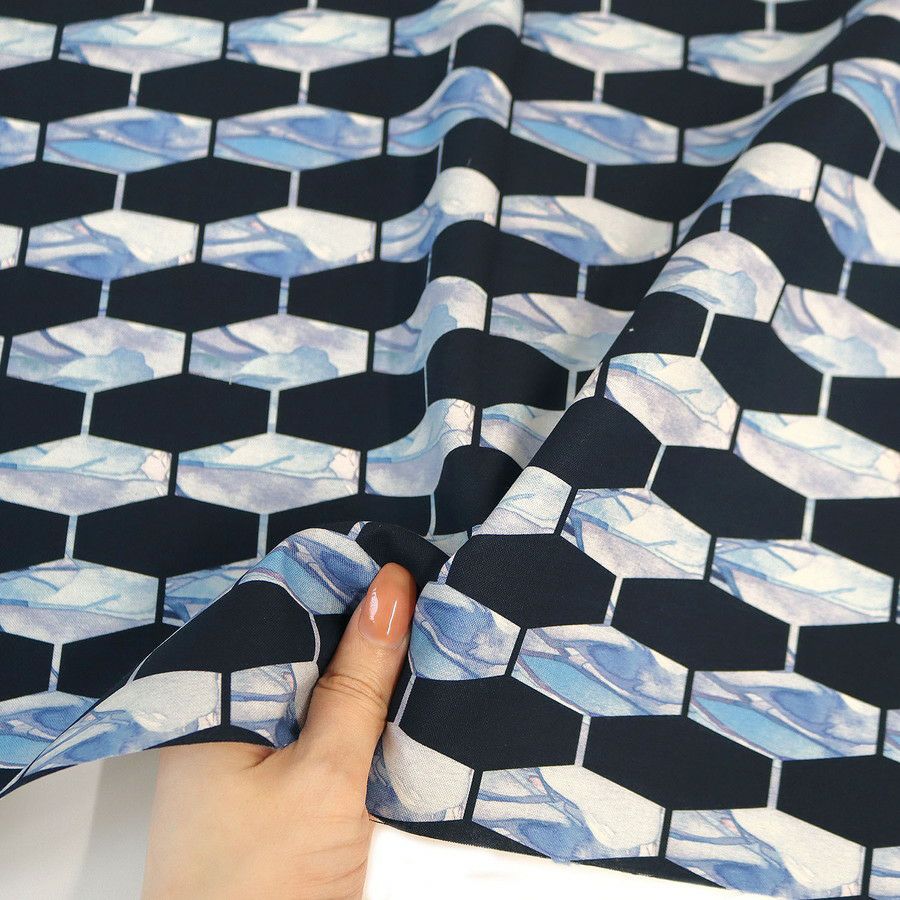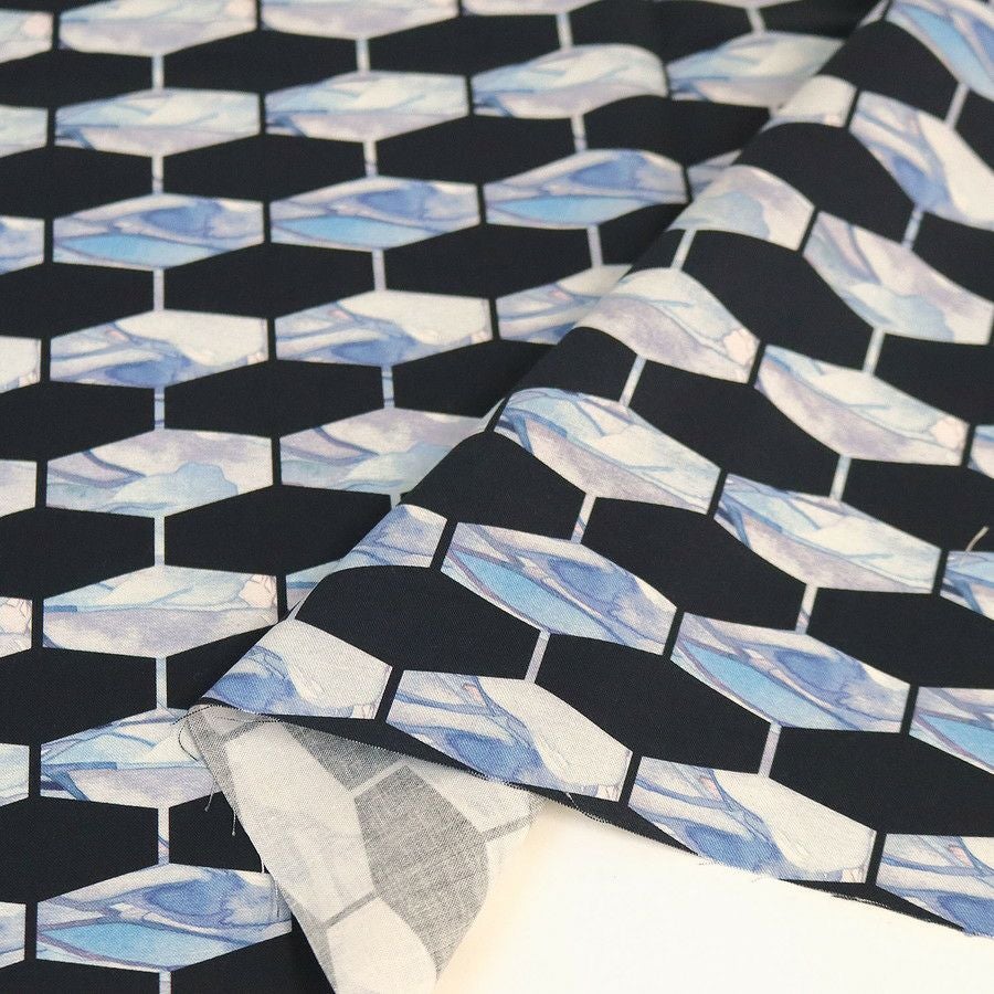 他の画像を見る FSP-903 輸入生地 生地 ネイビー地 水彩 水色六角形 FreeSpirit フリースピリット USAプリント 巾約110cm最低単位50cm~10cm単位の切売 ¥ 238 税込 お気に入りに登録する