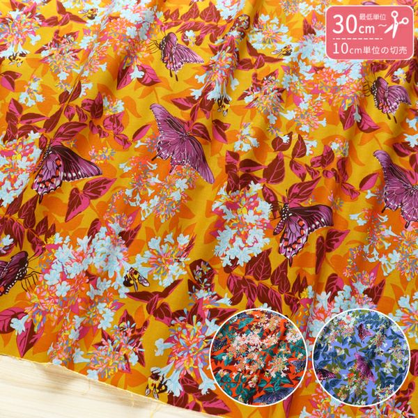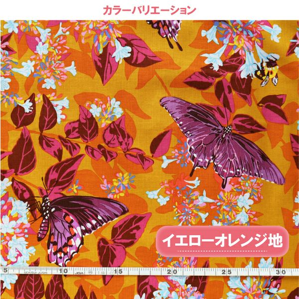 - 輸入生地 輸入 生地 USAプリント ちょうちょ イエロー地 FreeSpirit フリースピリット アンナマリア USAプリント (最低単位30cm~10cm単位の切り売り)