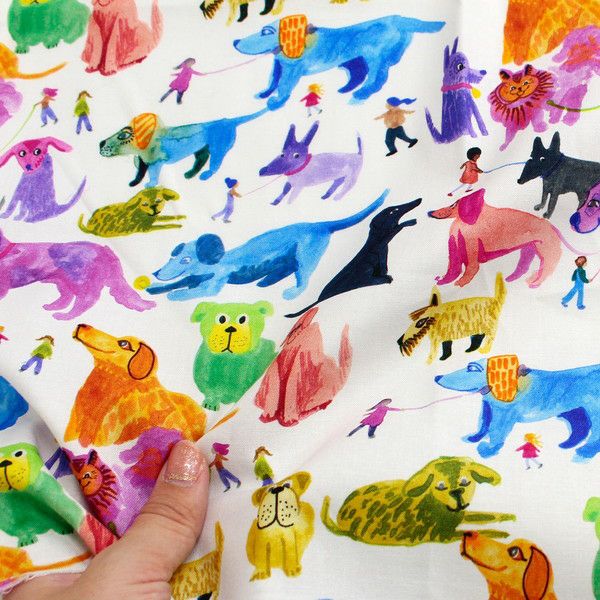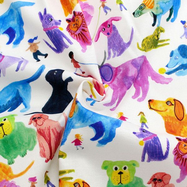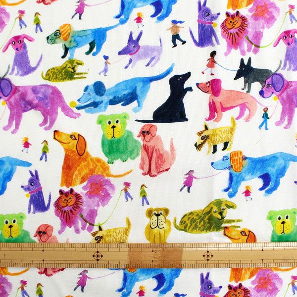 輸入生地 生地 WH地水彩カラフル犬の散歩 STELLA ステラ TIMELESS USAプリント (最低単位30cm~10cm単位の切売) | 手芸材料のネットショップ つくる楽しみ.com