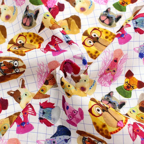 輸入生地 生地 WH地メガネをかけた犬 STELLA ステラ TIMELESS USAプリント (最低単位30cm~10cm単位の切売) | 手芸材料のネットショップ つくる楽しみ.com