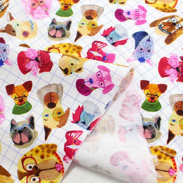 輸入生地 生地 WH地メガネをかけた犬 STELLA ステラ TIMELESS USAプリント (最低単位30cm~10cm単位の切売)