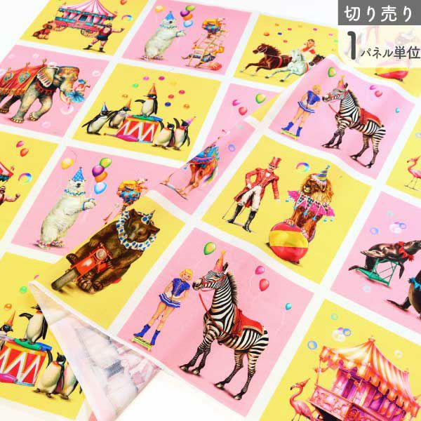生地 輸入生地 プリント生地 USAプリント 楽しいサーカス柄パネル Michael Miller マイケルミラー 巾約110cm×70cmパネル単位の切り売り