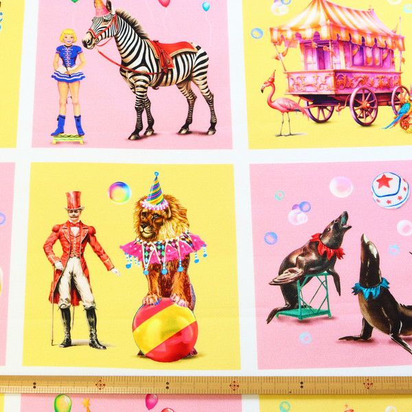 生地 輸入生地 プリント生地 USAプリント 楽しいサーカス柄パネル Michael Miller マイケルミラー 巾約110cm×70cmパネル単位の切り売り | 手芸材料のネットショップ つくる楽しみ.com