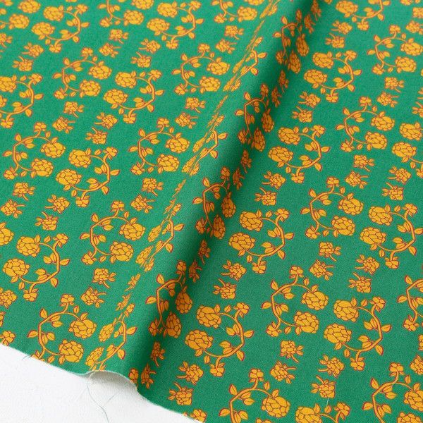 輸入生地 生地 グリーン地 イエロー花 FreeSpirit フリースピリット USAプリント (最低単位30cm~10cm単位の切売) | 手芸材料のネットショップ つくる楽しみ.com