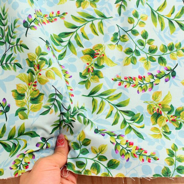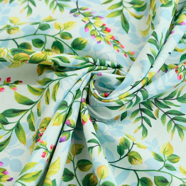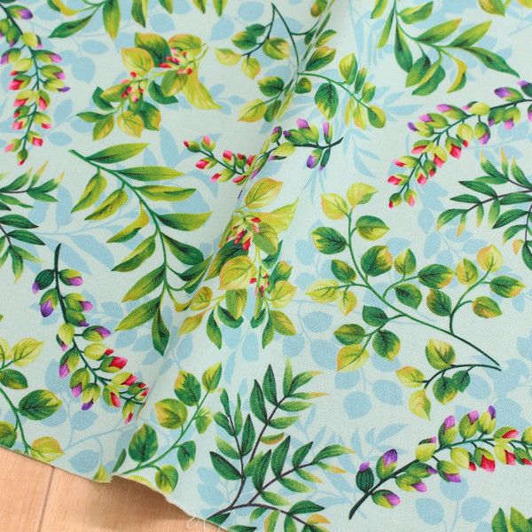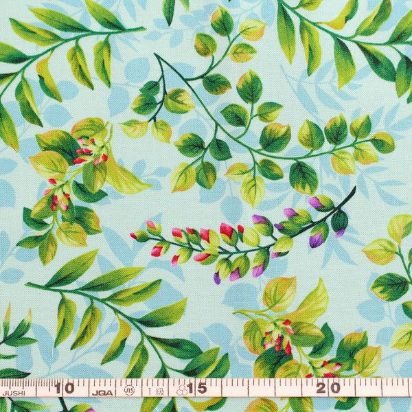 輸入生地 生地 ブルー地 葉っぱ つぼみピンクパープル Free Sprit フリースピリット USAプリント (最低単位30cm~10cm単位の切売) | 手芸材料のネットショップ つくる楽しみ.com