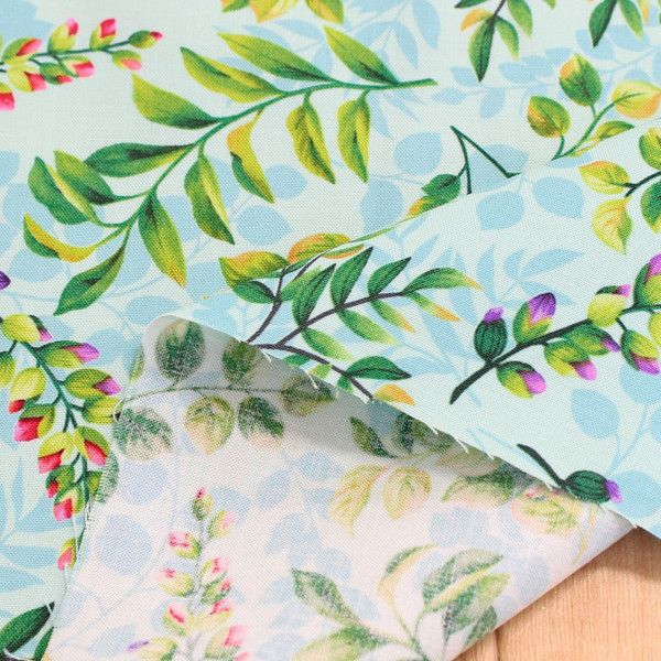輸入生地 生地 ブルー地 葉っぱ つぼみピンクパープル Free Sprit フリースピリット USAプリント (最低単位30cm~10cm単位の切売)
