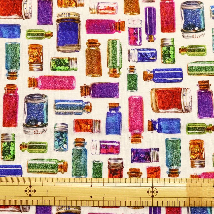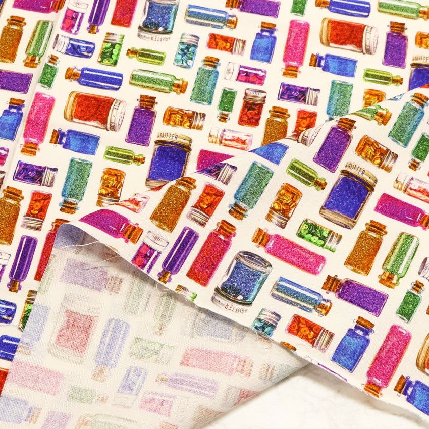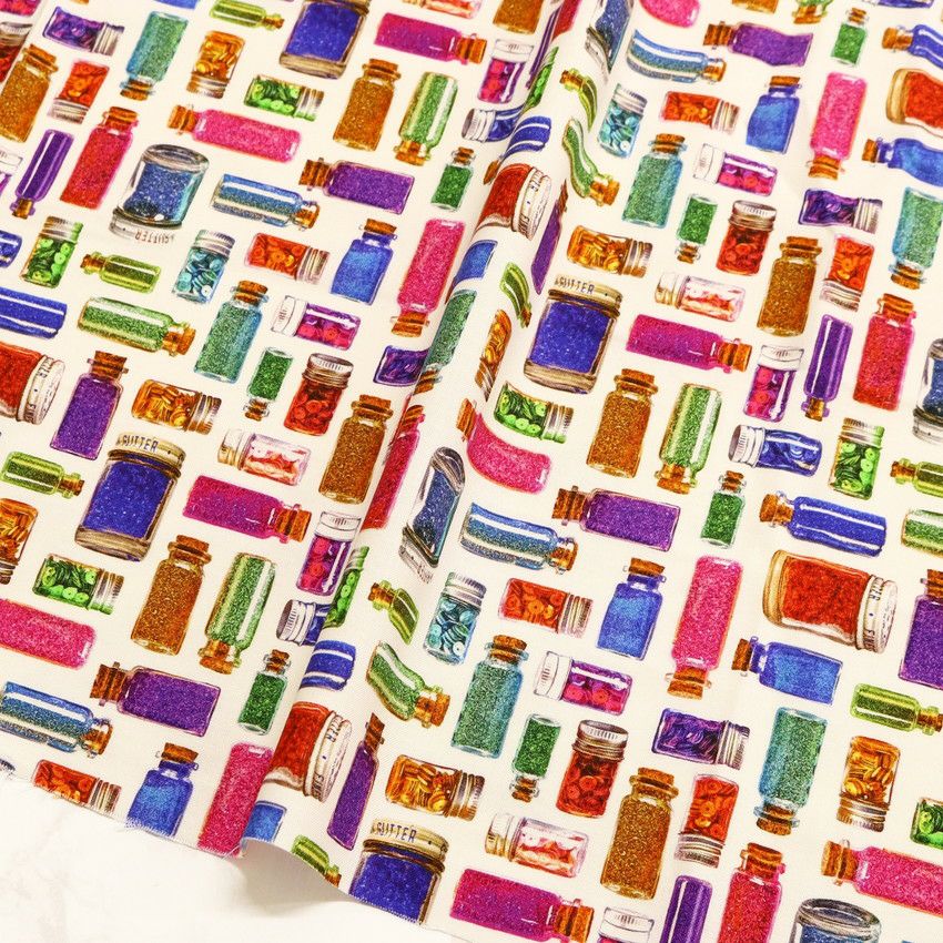 他の画像を見る ROB23023-1 生地 輸入生地 プリント生地 USAプリント クリーム地 ビーズ ビーズ瓶 瓶柄 ROBERTKAUFMAN ロバートカフマン 巾約110cm (最低単位30cm~10cm単位の切り売り ) ¥ 264 税込 お気に入りに登録する
