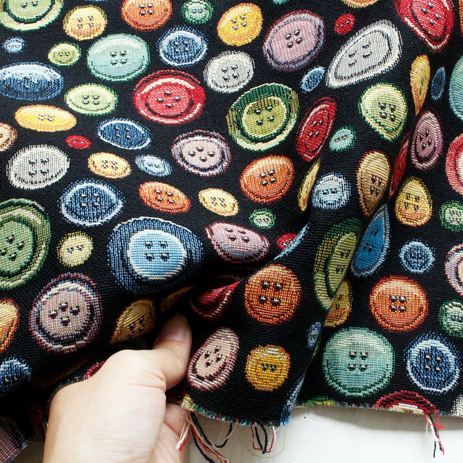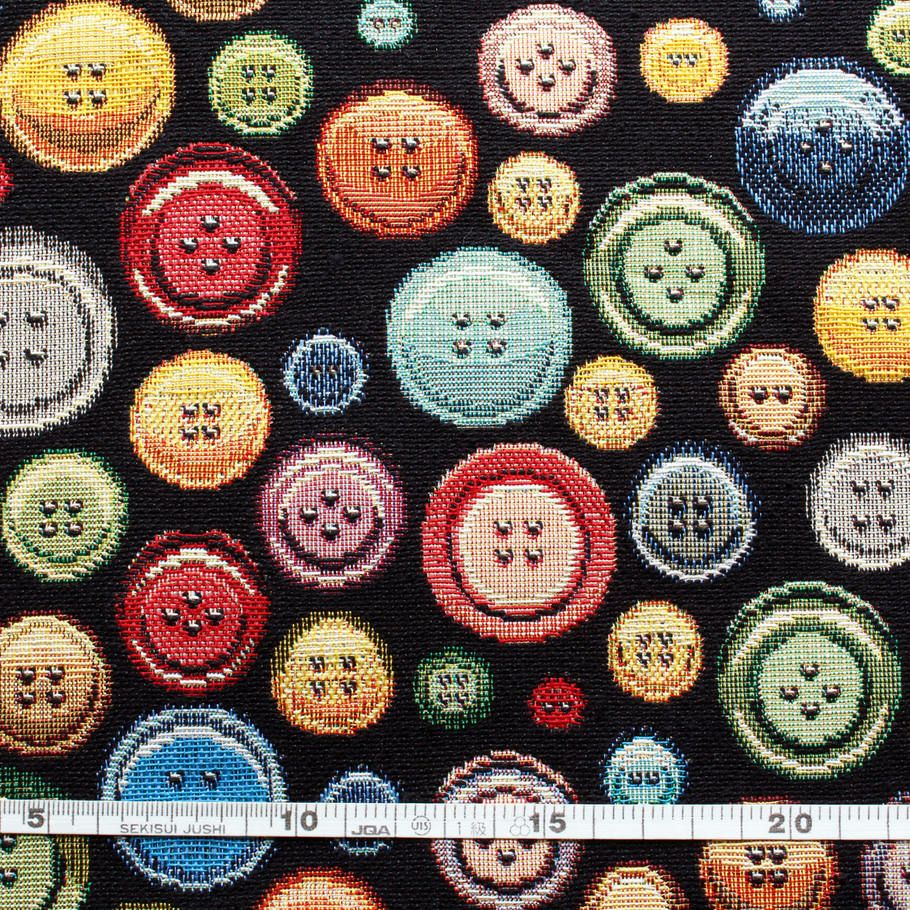 他の画像を見る GB-BUTTONS-4 ゴブラン 生地 インポート インテリア ゴブラン織り ボタンがいっぱい ブラック 140cm巾 (最低単位50cm~10cm単位の切売) ¥ 531 税込 お気に入りに登録する