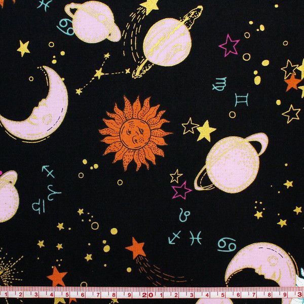 生地 輸入生地 USA生地 輸入 太陽と月 太陽系 宇宙 天体 アレキサンダーヘンリー 最終入荷第一弾 (最低単位30cm~10cm単位の切り売り) | 手芸材料のネットショップ つくる楽しみ.com