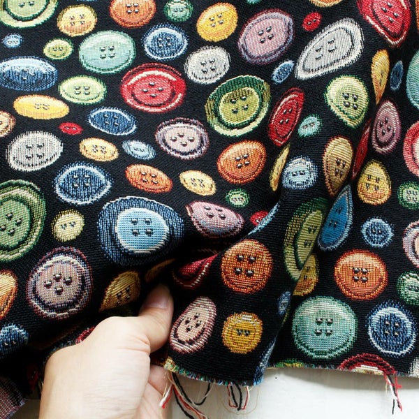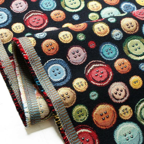ゴブラン 生地 インポート インテリア ゴブラン織り ボタンがいっぱい ブラック 140cm巾 (最低単位50cm~10cm単位の切売) | 手芸材料のネットショップ つくる楽しみ.com
