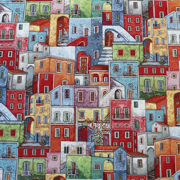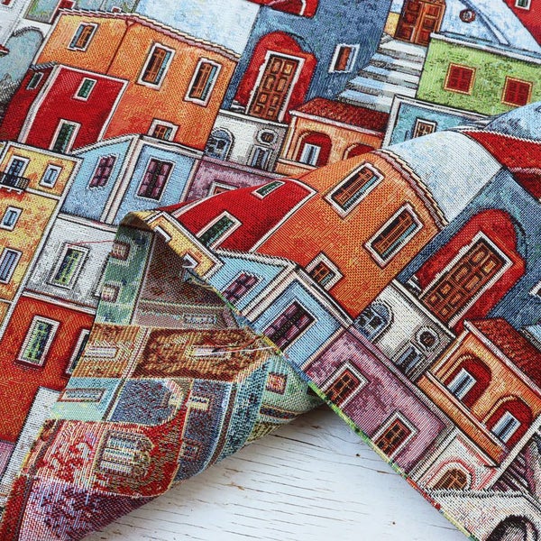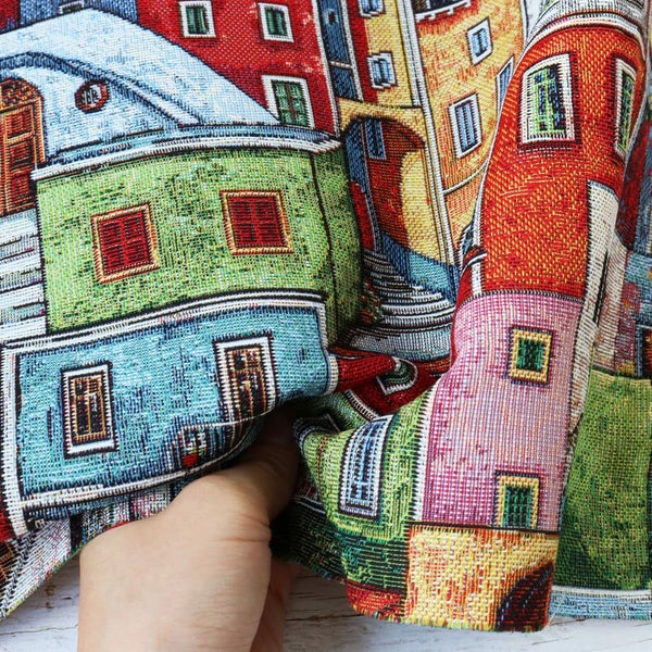 ゴブラン 生地 インポート インテリア ゴブラン織り カラフルハウス 140cm巾 (最低単位50cm~10cm単位の切売) | 手芸材料のネットショップ つくる楽しみ.com