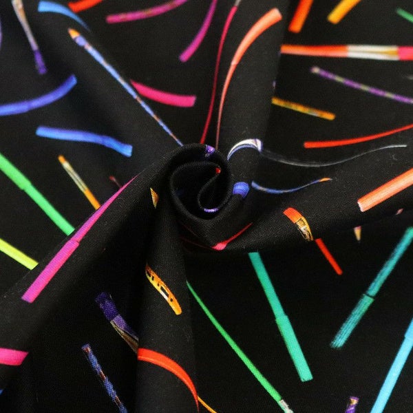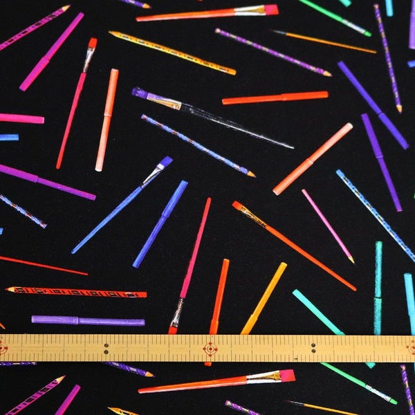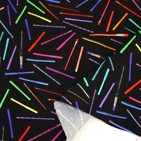 生地 輸入生地 プリント生地 USAプリント ブラック 鉛筆 筆 マーカーペン ROBERTKAUFMAN ロバートカフマン 巾約110cm (最低単位30cm~10cm単位の切り売り) | 手芸材料のネットショップ つくる楽しみ.com