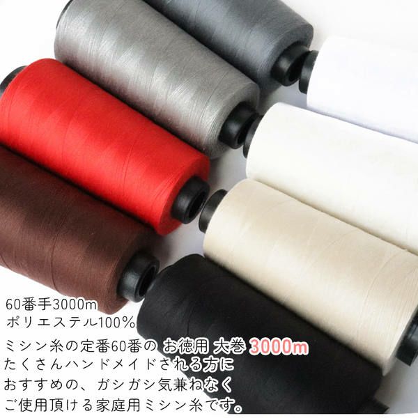 職業用 ミシン糸 60番3000m 同色6個入 スパンミシン糸 白 黒 生成 色物 全10色 | 手芸材料のネットショップ つくる楽しみ.com