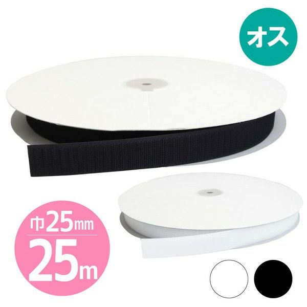 【徳用25m】マジックテープ(エコマジック)縫製用 巾25mmx25m 【Aオス】白・黒 面ファスナー ベルクロ 縫い付け 業務用 | 手芸材料のネットショップ つくる楽しみ.com