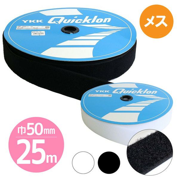 毛足が長くて強力接着 【徳用25m】マジックテープ クイックロンモヘア 縫い付けタイプ 【Bメス】 (5cm巾×25m巻) 白| つくる楽しみ 面ファスナー ベルクロ 縫製用