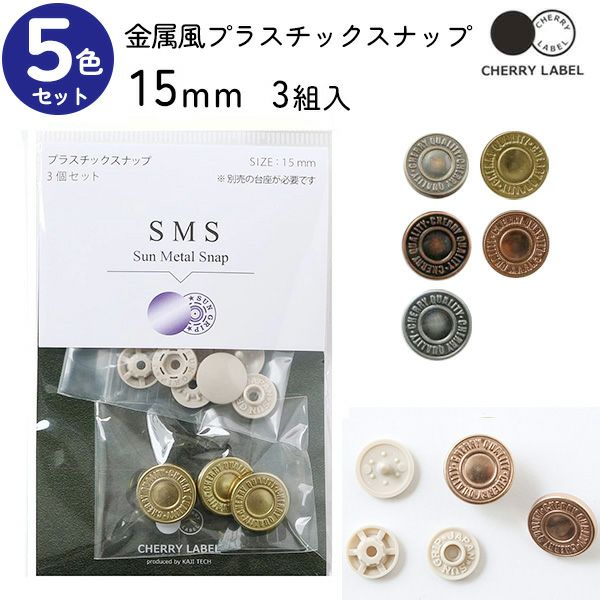 メタル風スナップ ボタン 釦 ぼたんのみ 15mm 3組 CHERRY LABEL チェリーレーベル サンメタルスナップ type1 プラスチックスナップ | 手芸材料のネットショップ つくる楽しみ.com