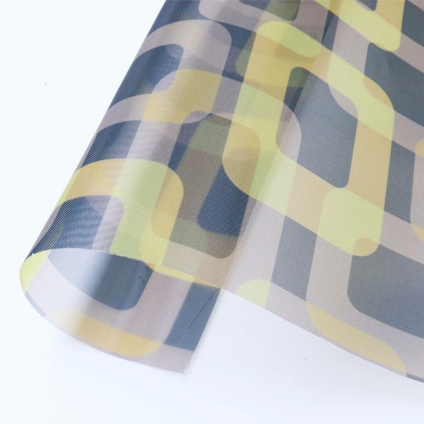 生地 ナイロン 転写チュール ハードチュール ブラック地 イエロースクエア 巾約68cm (最低単位50cm~10cm単位の切売り)