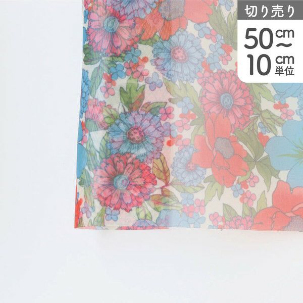 生地 ナイロン 転写チュール ハードチュール 生成 花柄 レッド ブルー ピンク 巾約68cm (最低単位50cm~10cm単位の切売り) | 手芸材料のネットショップ つくる楽しみ.com