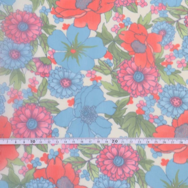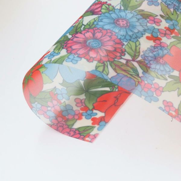 生地 ナイロン 転写チュール ハードチュール 生成 花柄 レッド ブルー ピンク 巾約68cm (最低単位50cm~10cm単位の切売り)
