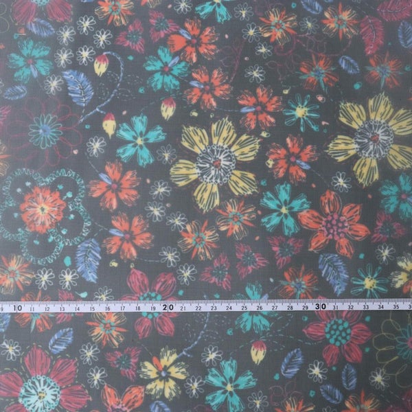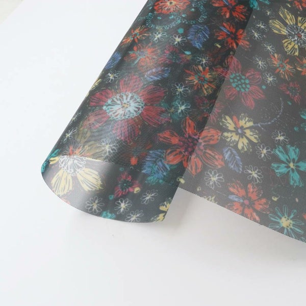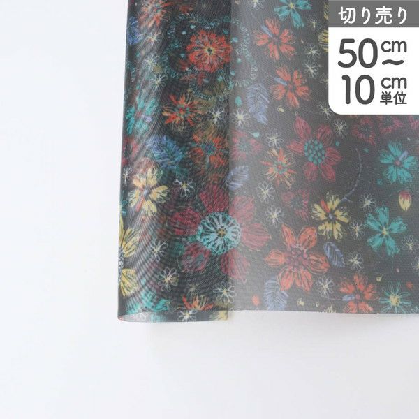 生地 ナイロン 転写チュール ハードチュール ブラック地 スケッチ カラフル花柄 巾約68cm (最低単位50cm~10cm単位の切売り) | 手芸材料のネットショップ つくる楽しみ.com