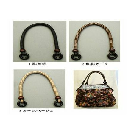 コットンや化繊の紐の表面に、薄くワックス(ロウ)をコーティングしたものです。表面がツルツルでレザーのような質感です。横巻にした持ちやすい持ち手です。和風や先染めの布にぴったり。