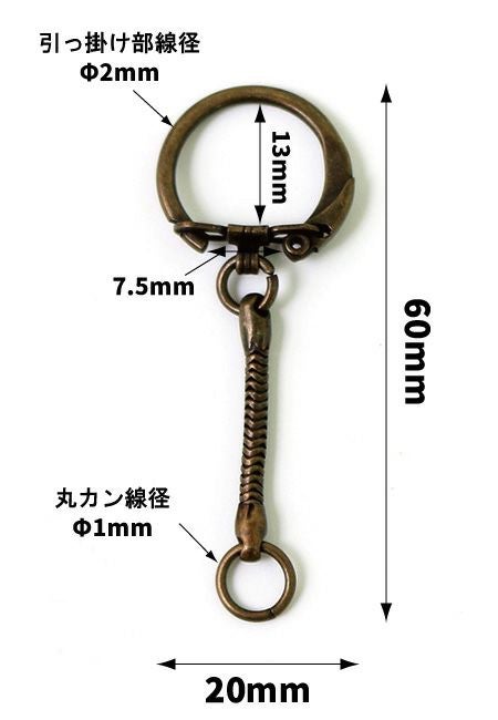 - キーホルダー スネークタイプ 全長6cm、φ20mm 20個入