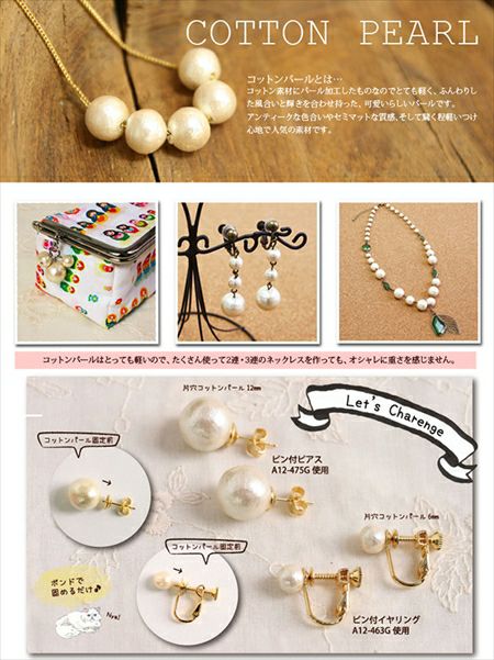 アクセサリーパーツ コットンパール 片穴 16mm キスカ 4個| つくる楽しみ | 手芸材料のネットショップ つくる楽しみ.com