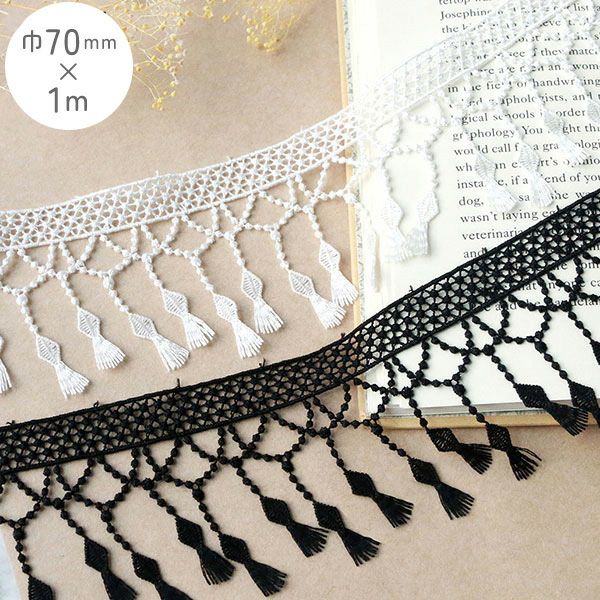 フリンジレース 1m巻 白 黒 | 手芸材料のネットショップ つくる楽しみ.com