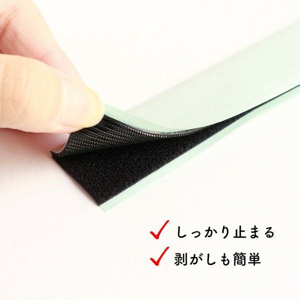 テープのフックとループを合わせて、抑えることでしっかり止まり、剥がすときは簡単に剥がすことができます。