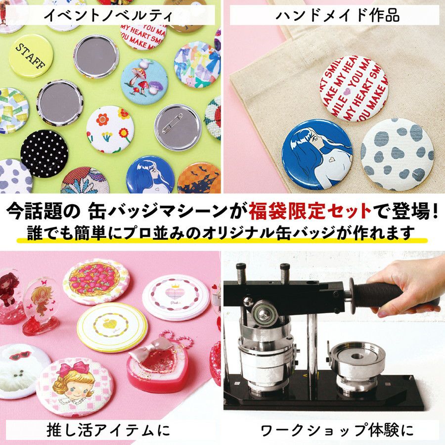 他の画像を見る FUK25W-509 福袋 2026年 手芸 缶バッジマシーンスペシャルセット 機械+缶ミラー+バッジ土台+キーチェーン 入る 推し活 オリジナル 缶 バッジ バッヂ 缶ミラー 鏡 ハンドミラー 簡単 便利 文化祭 学校 子ども プレゼント 業務 マシーン 第二弾 ¥ 51,150 税込 販売期間 2025/12/27 12:00 〜 2026/01/15 17:00 お気に入りに登録する