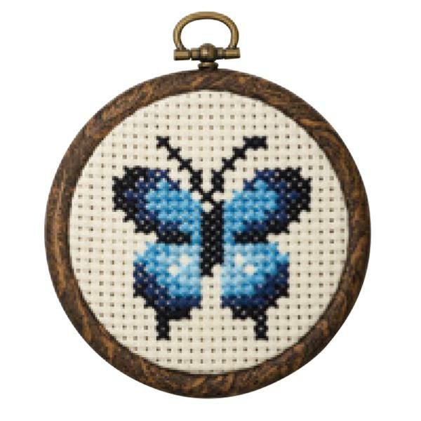 クロスステッチまんまるフレーム 蝶 刺しゅう 刺繍 工作 キット 夏休み 冬休み | 手芸材料のネットショップ つくる楽しみ.com