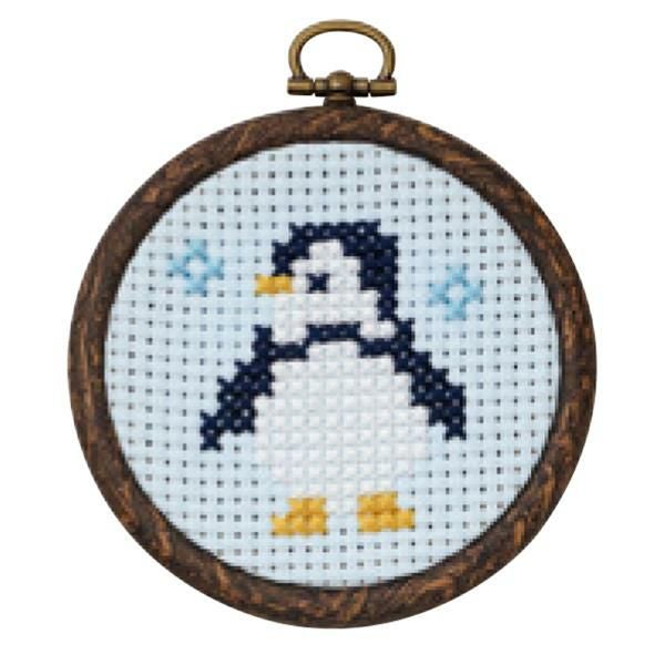 クロスステッチまんまるフレーム ペンギン 刺しゅう 刺繍 工作 キット 夏休み 冬休み | 手芸材料のネットショップ つくる楽しみ.com