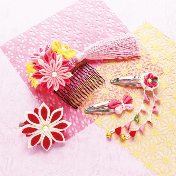 つまみ細工キット 花しごと 24 紅白のコサージュクリップ | 手芸材料のネットショップ つくる楽しみ.com