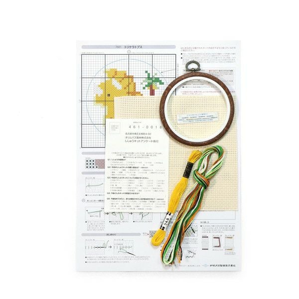 25番刺しゅう糸、クロス針、NO.3000(ジャバクロス中目)〈1〉ベージュ、カラー図案付説明書、おしゃれフープP-112木目