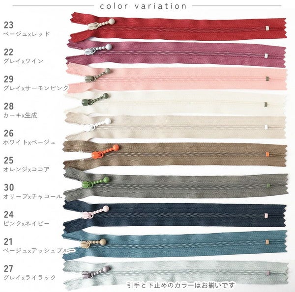 玉付きファスナー コイル 20cm くすみカラー アッシュ (1本) 玉付ファスナー 玉付 ファスナー YKK | 手芸材料のネットショップ つくる楽しみ.com
