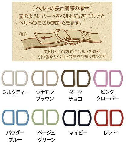 ベルトの長さ調節や袋ものの口止めに便利なパーツ。
