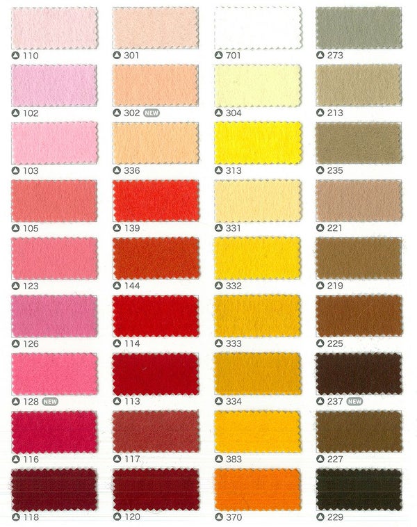 - フェルトミニー 20cmx20cm 厚さ約1㎜ SUN20 色番号 102~229