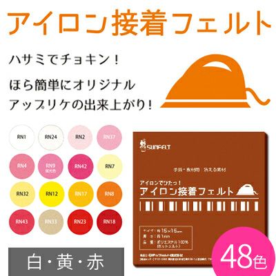 アイロン接着フェルト 15×15cm 白・黄・赤 サンフェルト | 手芸材料のネットショップ つくる楽しみ.com