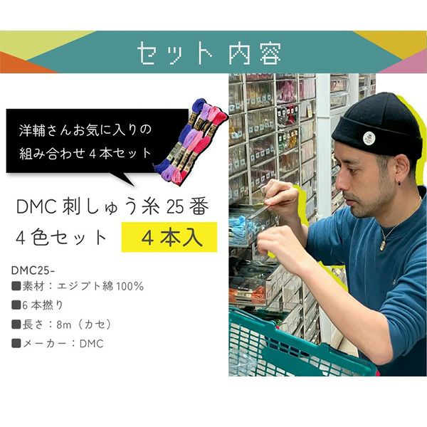 【洋輔カラーの刺しゅう糸 4色セット】 DMC 刺しゅう糸 洋輔さんセレクト 4色セット 8バリエーションから選べる 図案付き