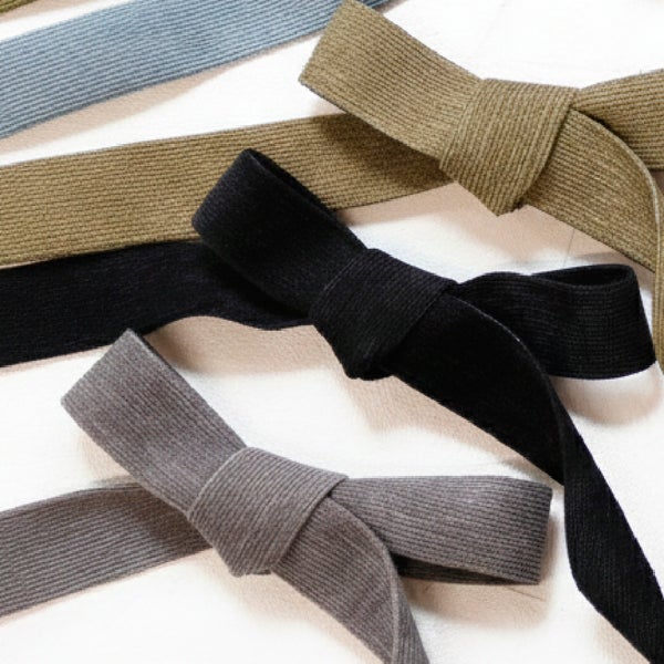 秋冬作品にぴったりのコーデュロイリボンテープはぎれを、合計約12m相当たっぷり詰め込みました。