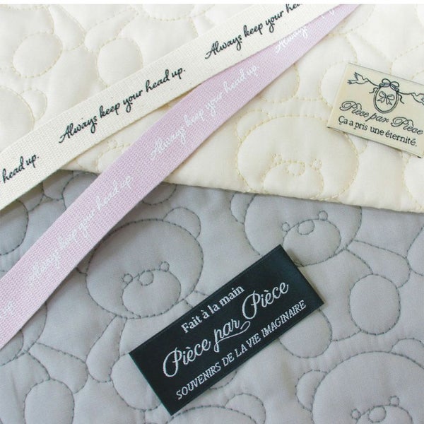 手をつないだくまさんの刺しゅうが並ぶ、やさしくて可愛いデザイン。