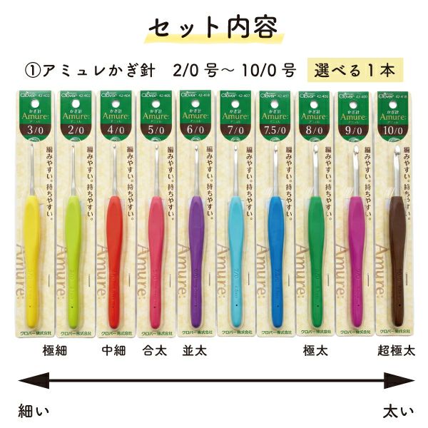 ① かぎ針「アミュレ」 2/0号~10/0号からお好きなサイズを1本