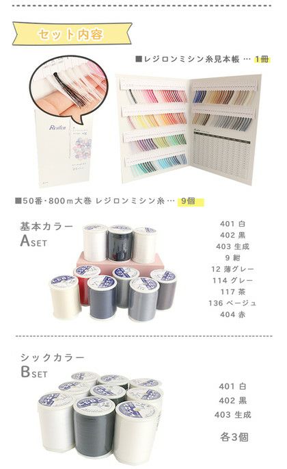 3. (まとめ買い) レジロン糸 50番800m と 見本帳セット 糸9個 | つくる楽しみ