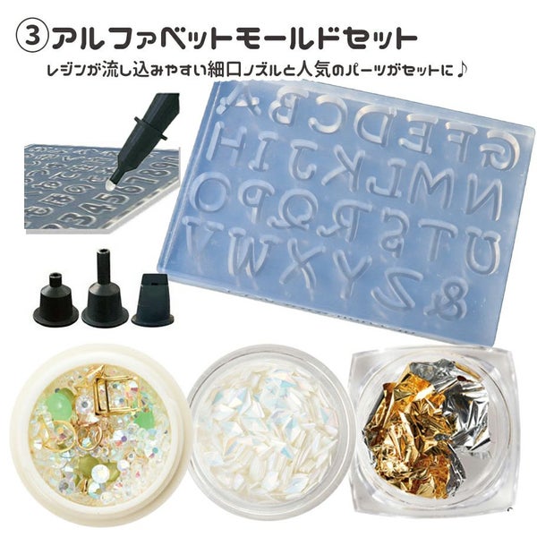 デコパーツとモールドにレジンが注ぎやすくなるノズルアタッチメントがついたお得なセット♪