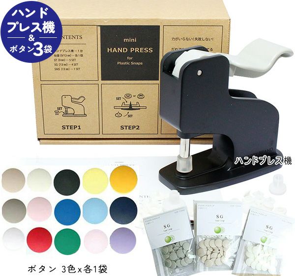 - プラスチックスナップ ボタン 釦 (打ち機付 ボタン 12組x3袋)13mm CHERRY LABEL チェリーレーベル サングリップ