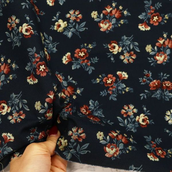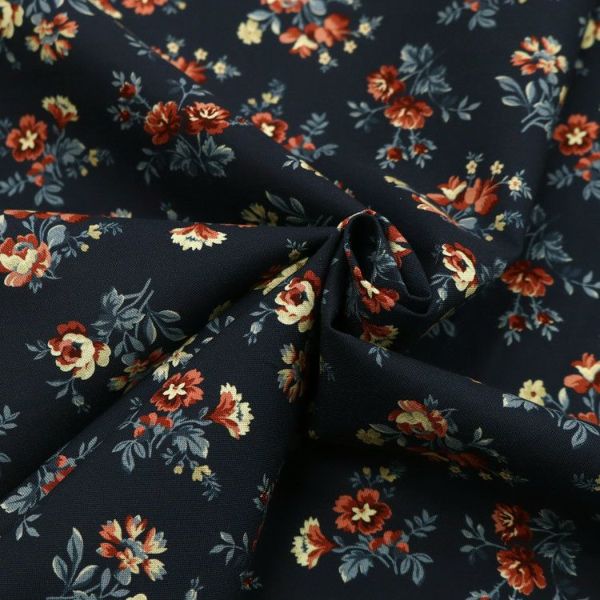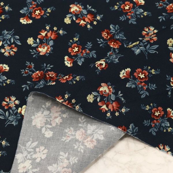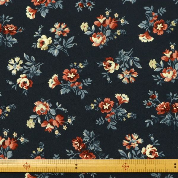 生地 輸入生地 USAプリント生地 花柄 フラワー生地 ネイビー地 赤い花柄 Treasures タイムレストレジャー STELLA ステラ 巾約110cm (最低単位30cm~10cm単位の切り売り) | 手芸材料のネットショップ つくる楽しみ.com
