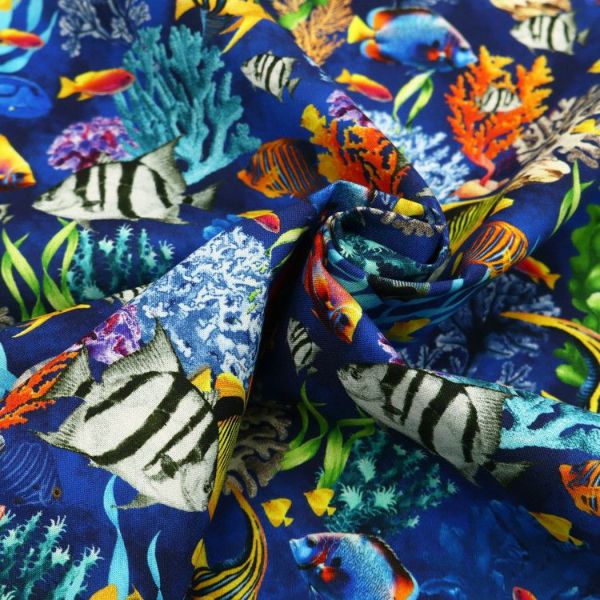 生地 輸入生地 USAプリント生地 海の中の魚たち さかな柄 魚柄 カラフル リアル Treasures タイムレストレジャー STELLA ステラ 巾約110cm (最低単位30cm~10cm単位の切り売り) | 手芸材料のネットショップ つくる楽しみ.com