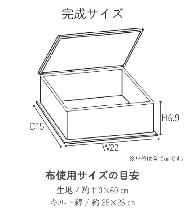 まだ作っていませんが、自分のお気に入りの布で箱を作りたくて購入しました。
